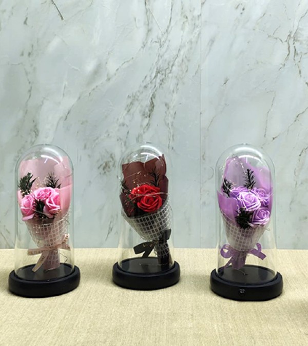 Işıklı Müzikli Fanus içinde Gül Buketi Alk5003 Ürün Ölçüleri; 21*11 Cm