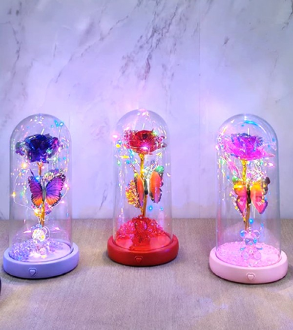 Işıklı Müzikli Romantik Kelebekli Fanus içinde Gül Alk5000 Ürün Ölçüleri; 21*11 Cm