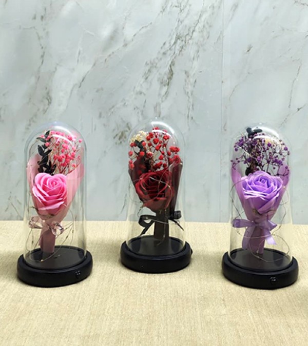 Işıklı Müzkli Dekoratif Cam Fanus İçinde Gül Alk5005 Ürün Ölçüleri; 21*11 Cm
