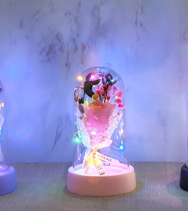 LED Işıklı Müzikli Cam Fanus İçinde Gül Buketi Alk5006