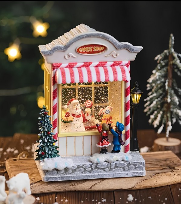 Yılbaşı Temalı Şekerci Dükkanı Kar Küresi Işıklı Müzikli Alk3191